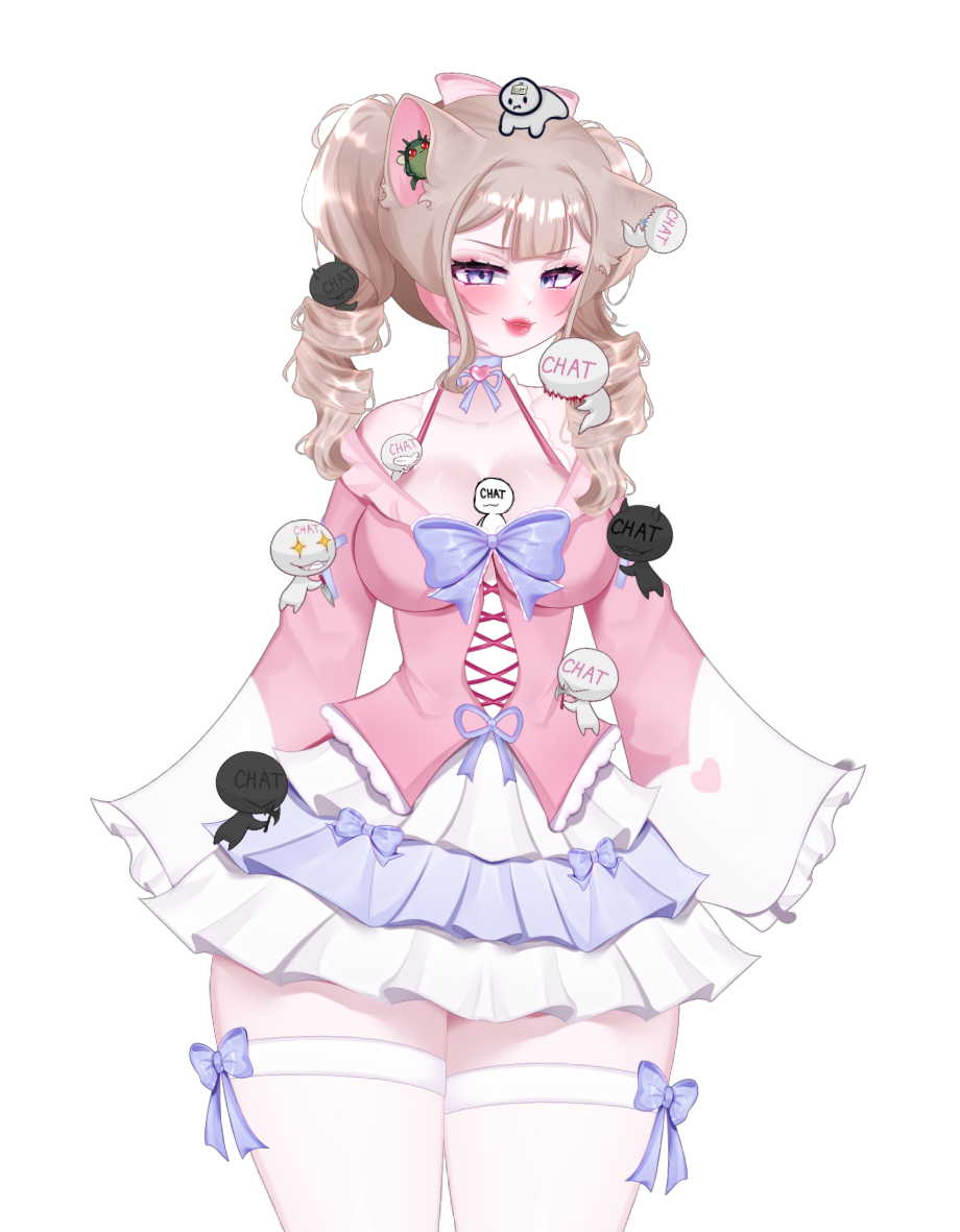A part-time ragdoll cat VTuber, she’s all pastel bows, cotton-candy curls, and cozy chaos wrapped in one. 💗✨